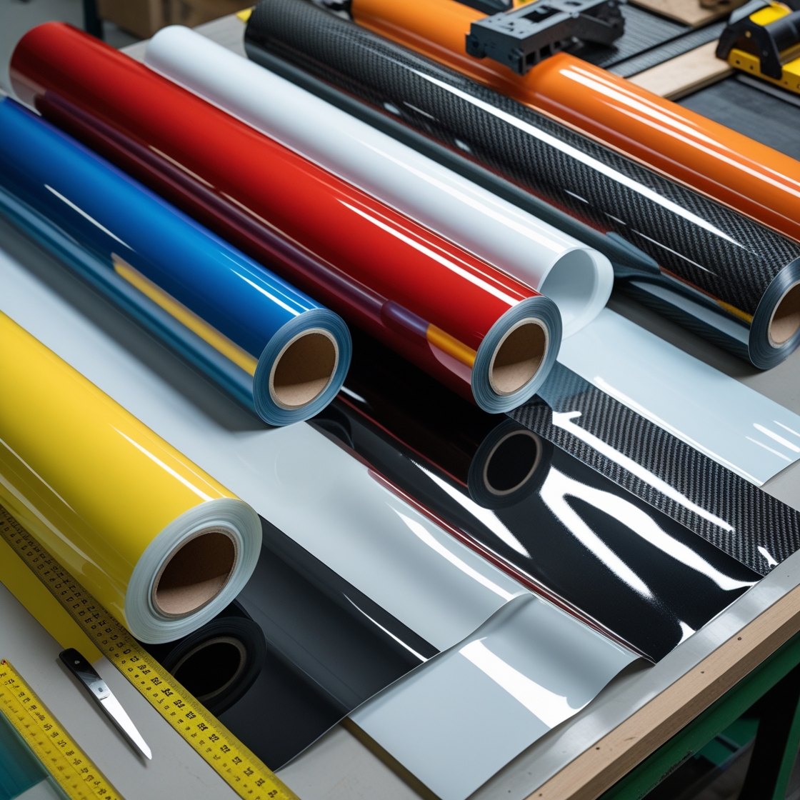 - Глянцевая пленка: обеспечивает яркий блеск и насыщенные цвета, что делает её популярным выбором для наружной рекламы и автомобильной обтяжки.