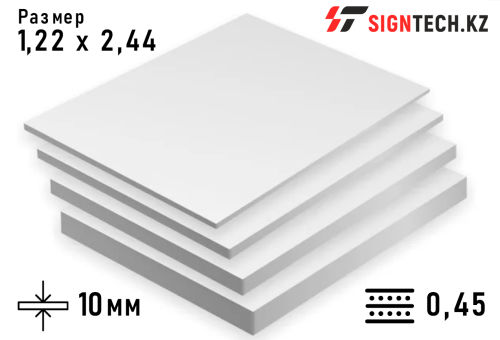 ПВХ 10 мм (плотность 0,45) Китай — это листовой пластик с мелкопористой внутренней структурой и гладкой ровной поверхностью. Лист вспененного ПВХ имеет малый вес, обладает хорошей звукоизоляцией и влагостойкостью, устойчив к воздействию окружающей среды. Вспененный лист ПВХ – один из самых востребованных материалов для производства наружной рекламы, поддается различным методам обработки (штамповка, гравировка и фрезерование, нанесение печатных изображений).