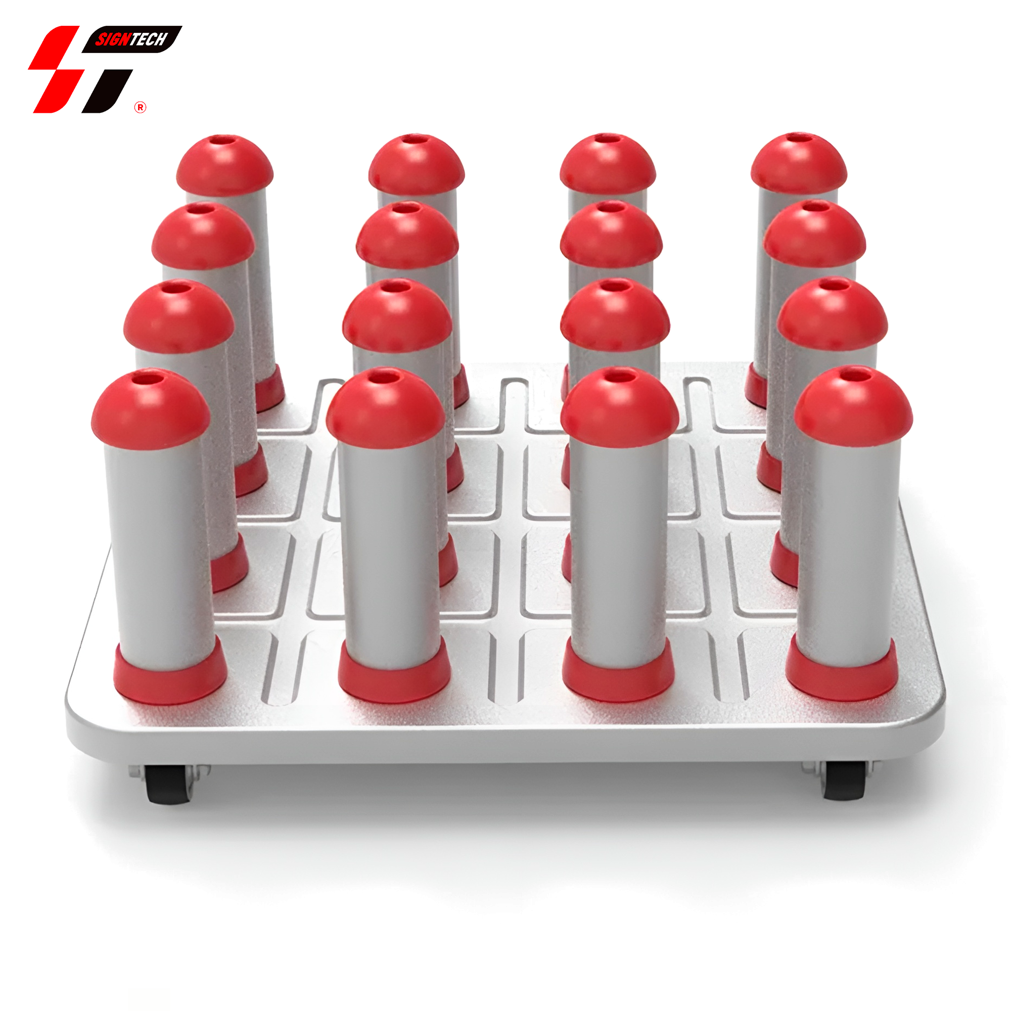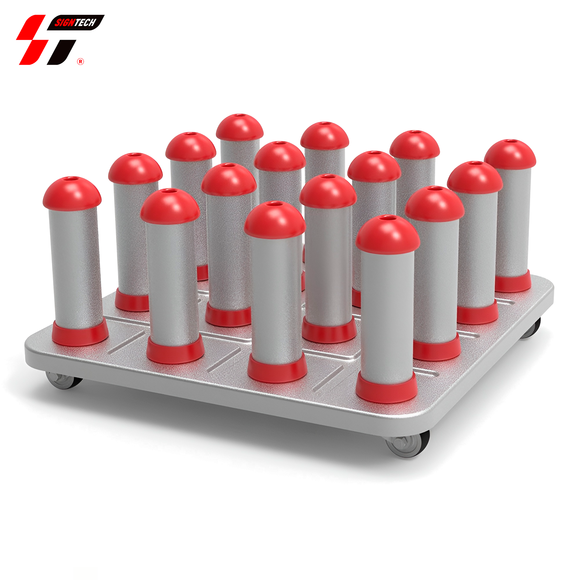 Эта сверхмощная тележка на колесиках вмещает 16 рулонов винила (с 3-дюймовым сердечником), что является идеальным инструментом для вывесок и типографий для организации своих виниловых и цифровых печатных носителей.