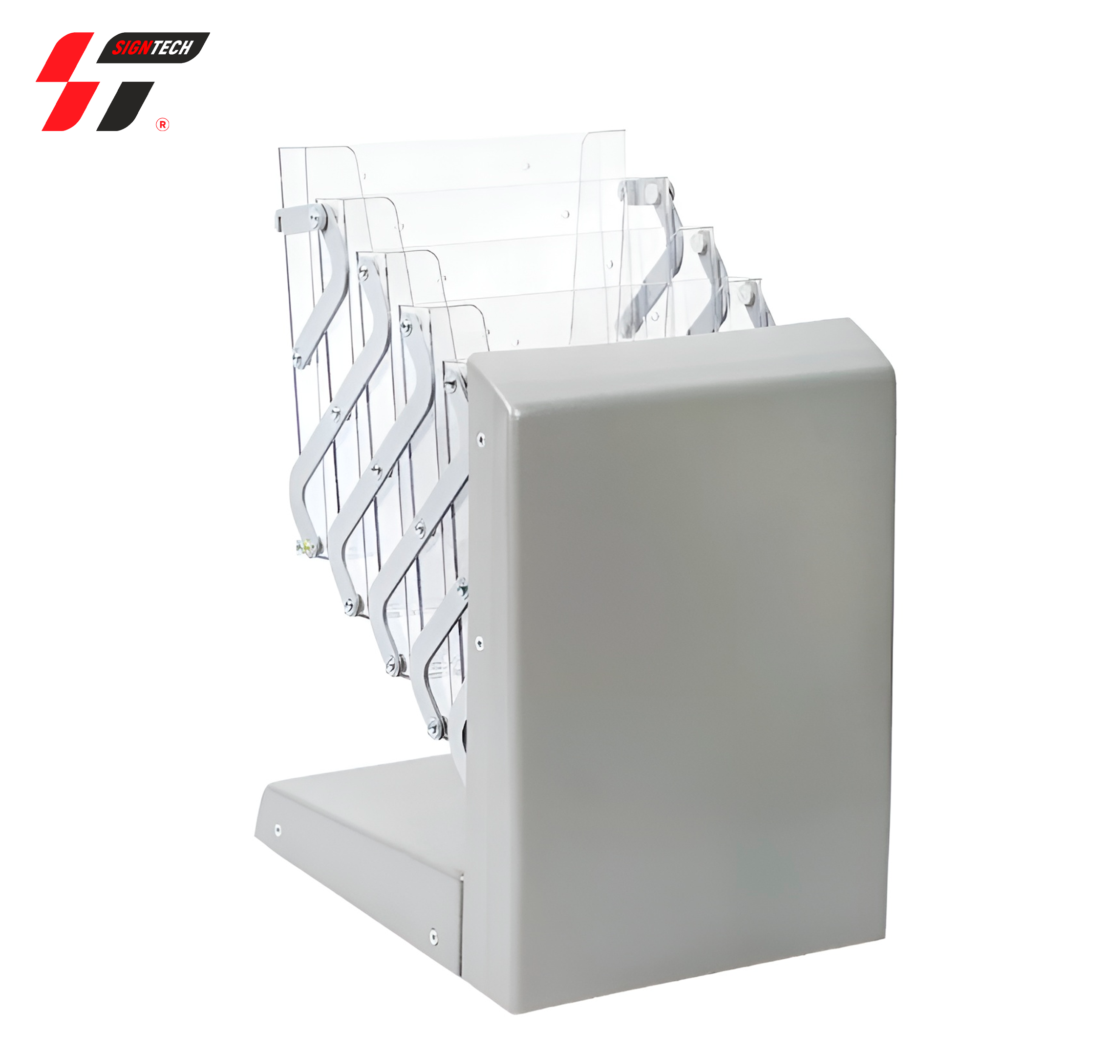 Буклетница А4 с металлическим основанием — надёжная и стильная стойка для размещения информационных материалов формата А4. Благодаря прочному металлическому основанию, буклетница обеспечивает устойчивость и долговечность, что делает её идеальным выбором для использования в офисах, на выставках, в зонах приёма клиентов и торговых пространствах.