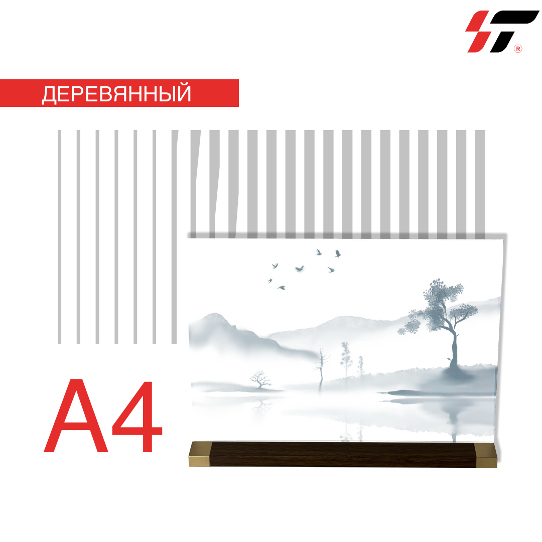 Настольный холдер (деревянный) А4 горизонтальный — элегантный и практичный аксессуар для размещения информационных материалов формата А4 в горизонтальной ориентации. С натуральным деревянным основанием, этот холдер прекрасно дополняет стильный интерьер и подходит для использования в офисах, ресторанах, отелях и торговых точках.