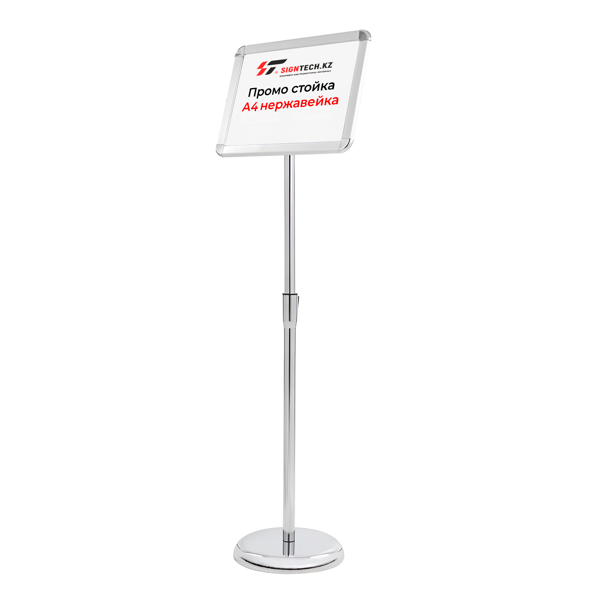 Промо стойка А4 нержавейка — это компактное и стильное решение для размещения рекламных материалов и информационных табличек формата A4. Выполненная из нержавеющей стали, она обладает прочностью и устойчивостью, что делает её идеальной для использования в торговых залах, офисах и на выставках.