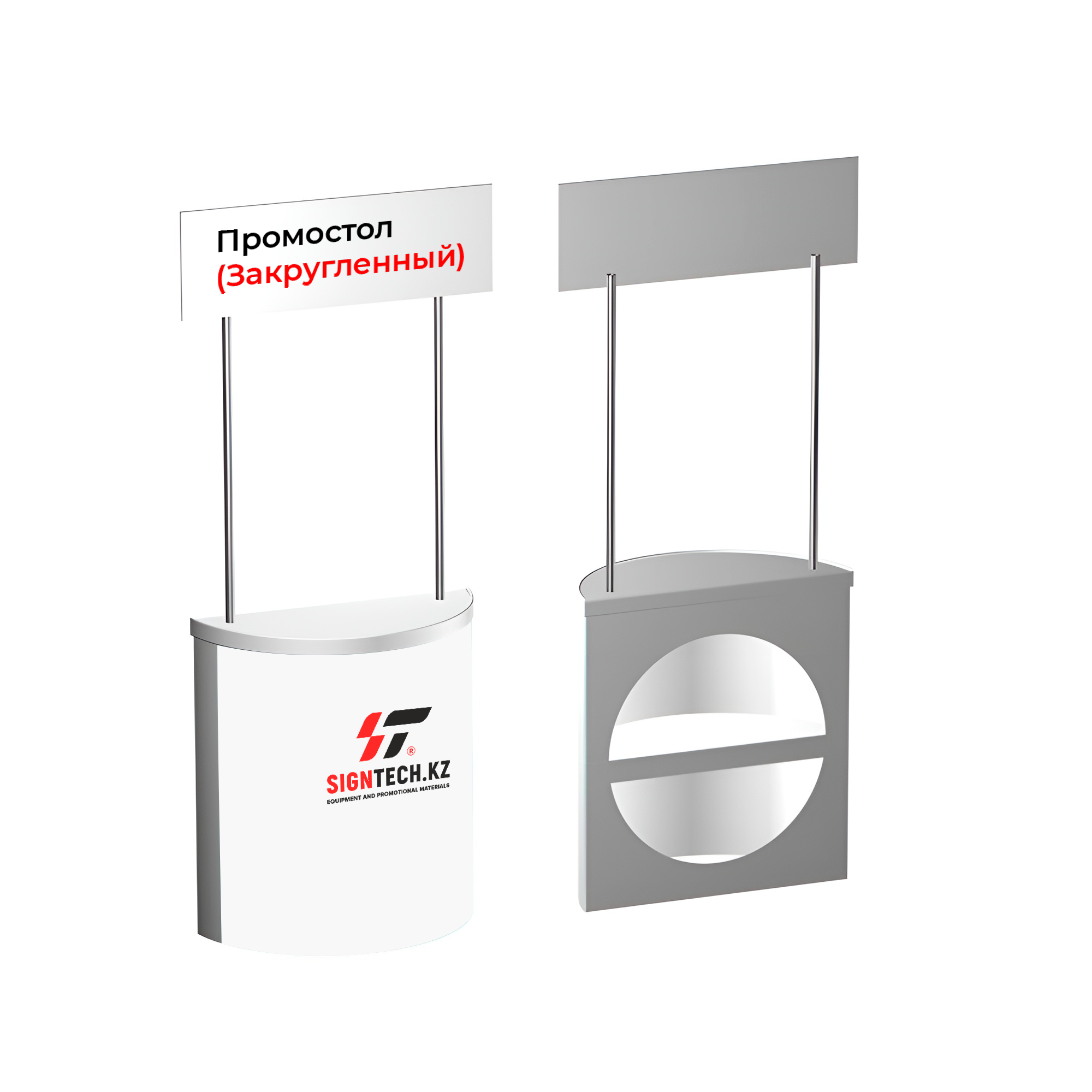 Промостол (Закругленный) — это функциональный и стильный элемент для проведения рекламных акций, дегустаций и презентаций. Благодаря закруглённой форме он привлекает внимание и обеспечивает удобство для работы с клиентами, идеально подходя для использования на выставках, в торговых центрах и других общественных местах.