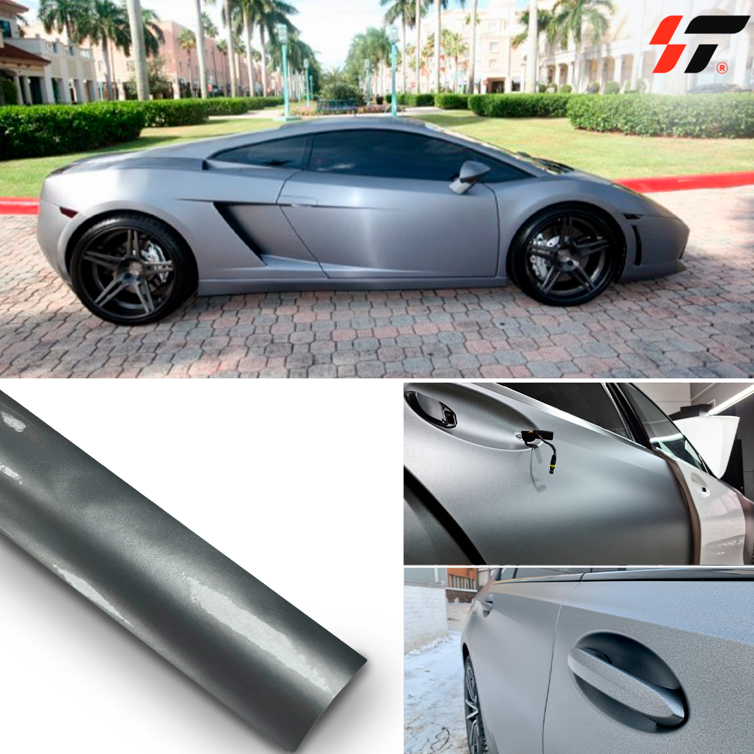 - Роскошный внешний вид: Пленка имеет яркий металлический блеск, создавая эффект эксклюзивного и стильного автомобиля. Цвет "GT Silver" подчеркивает элегантность и престижность, характерную для автомобилей Porsche.